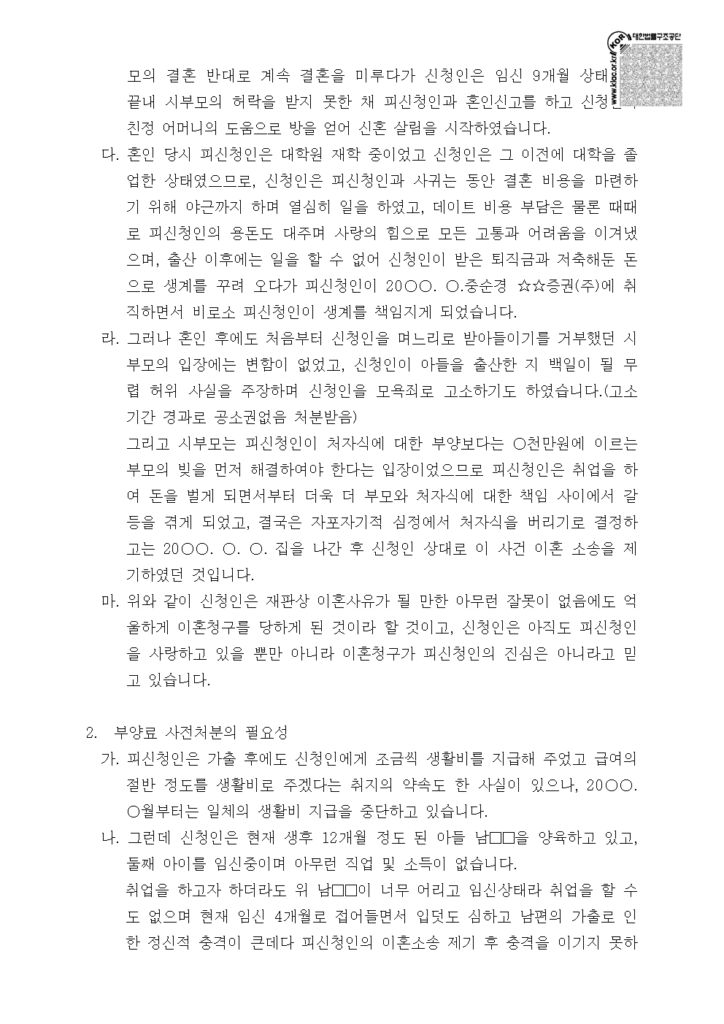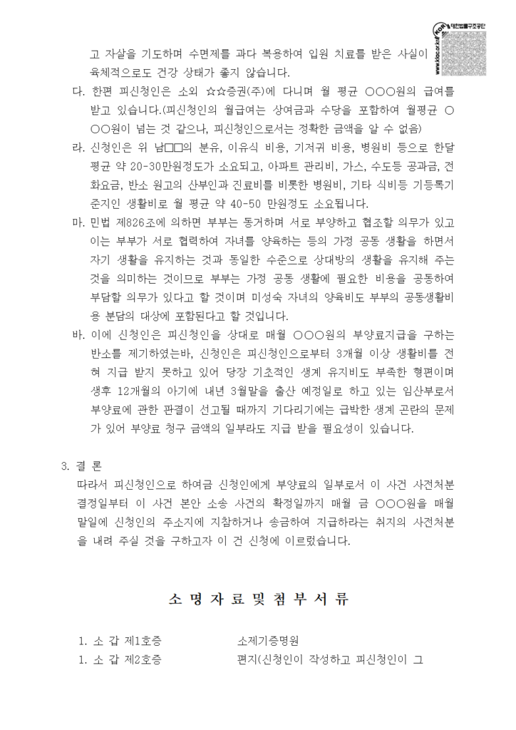 임시 양육비 사전처분 (당장의 생활비가 급할 때)